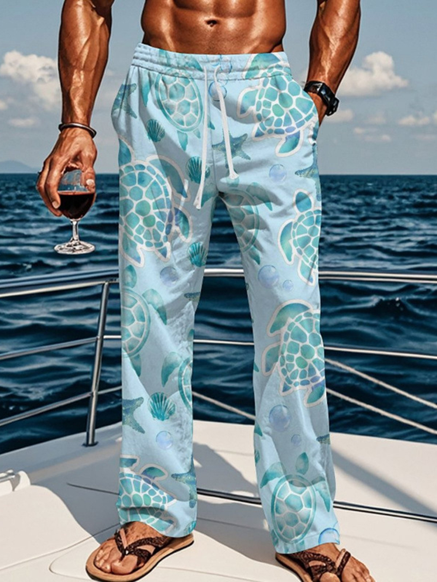 Men's Vacation Marine Life Turtles Print Comfy 100% Cotton Pants