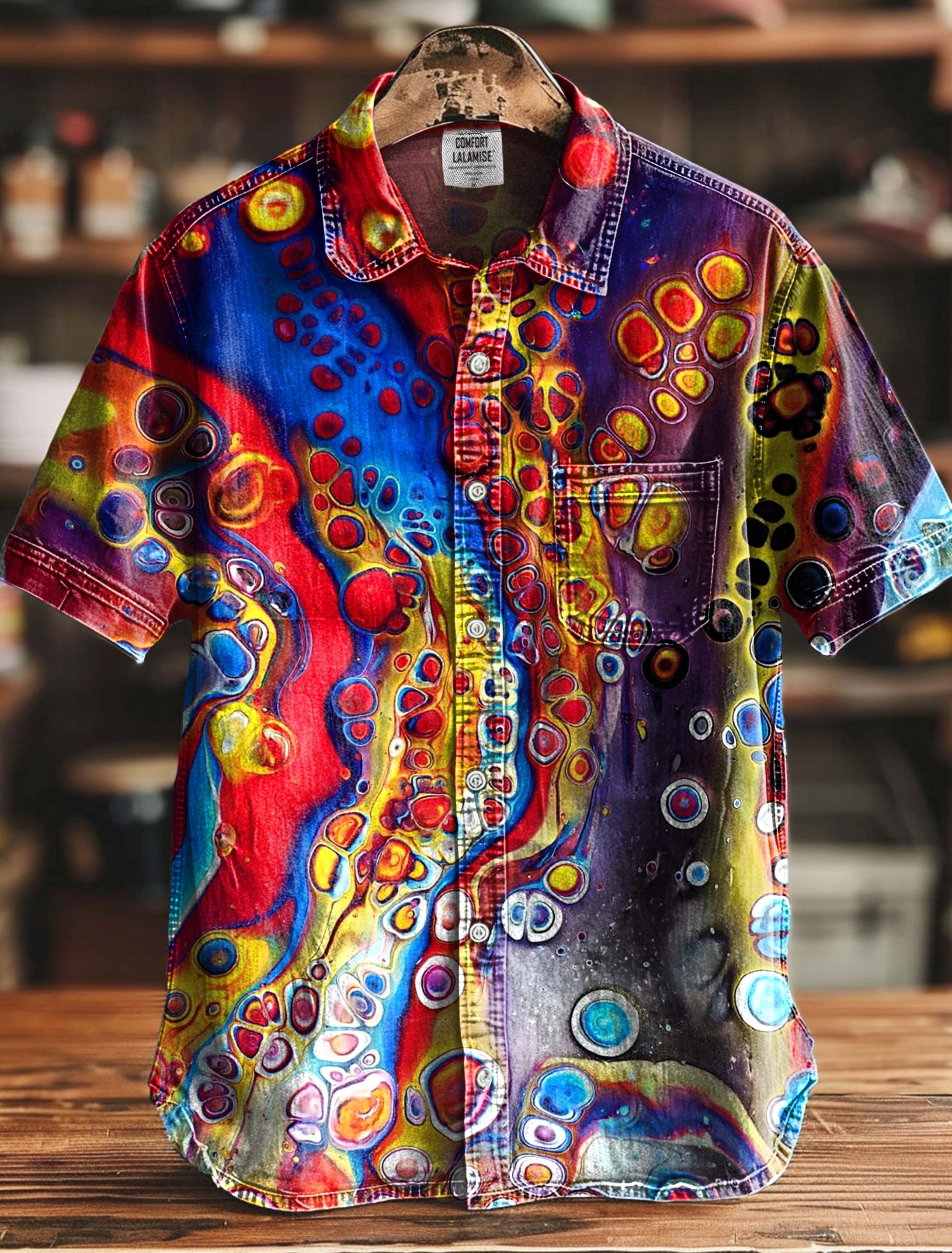 Colorful Abstract Ripple Print 100% Cotton Denim Shirt