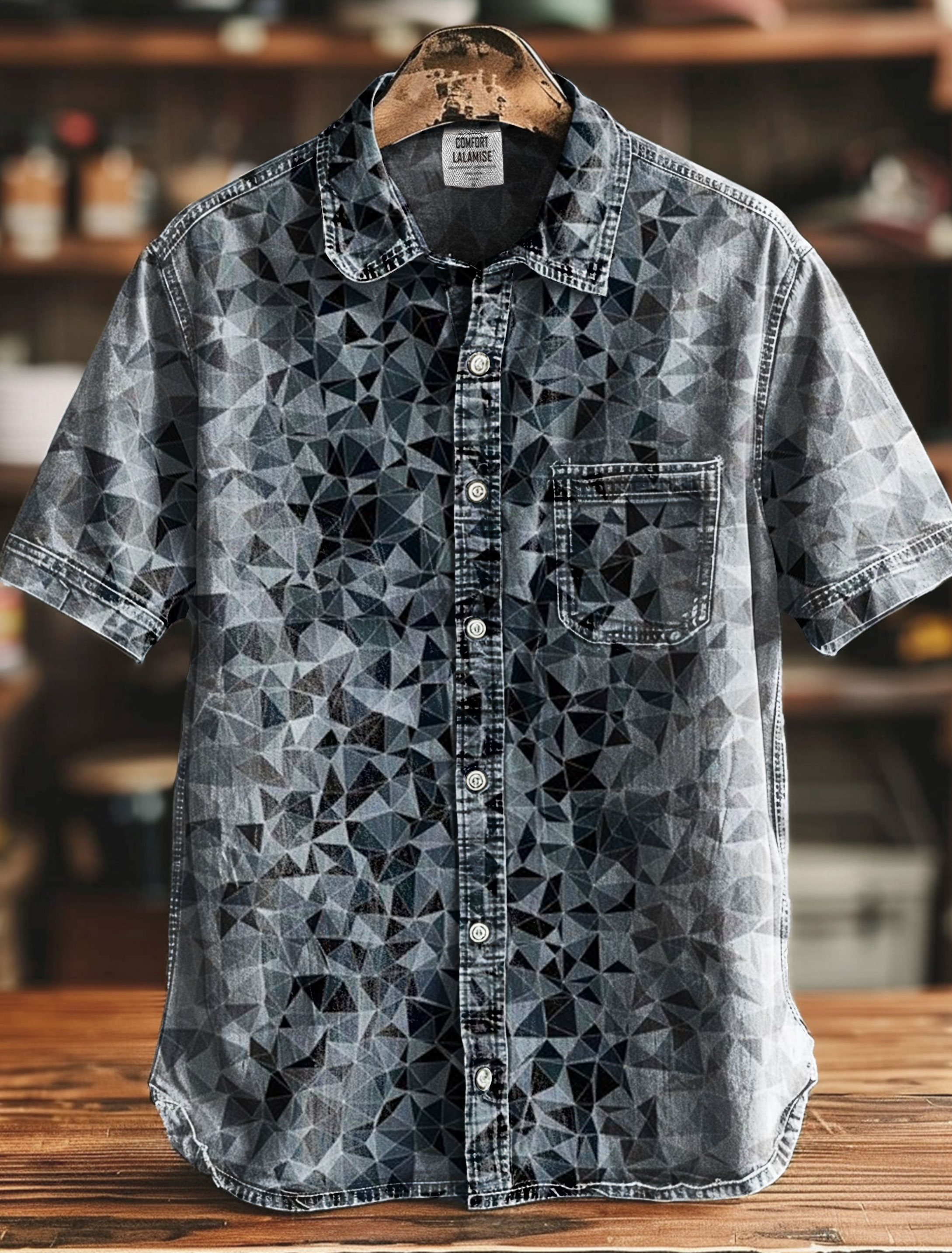Smudge Color Graffiti Art Pattern Vintage Print 100% Cotton Denim Shirt