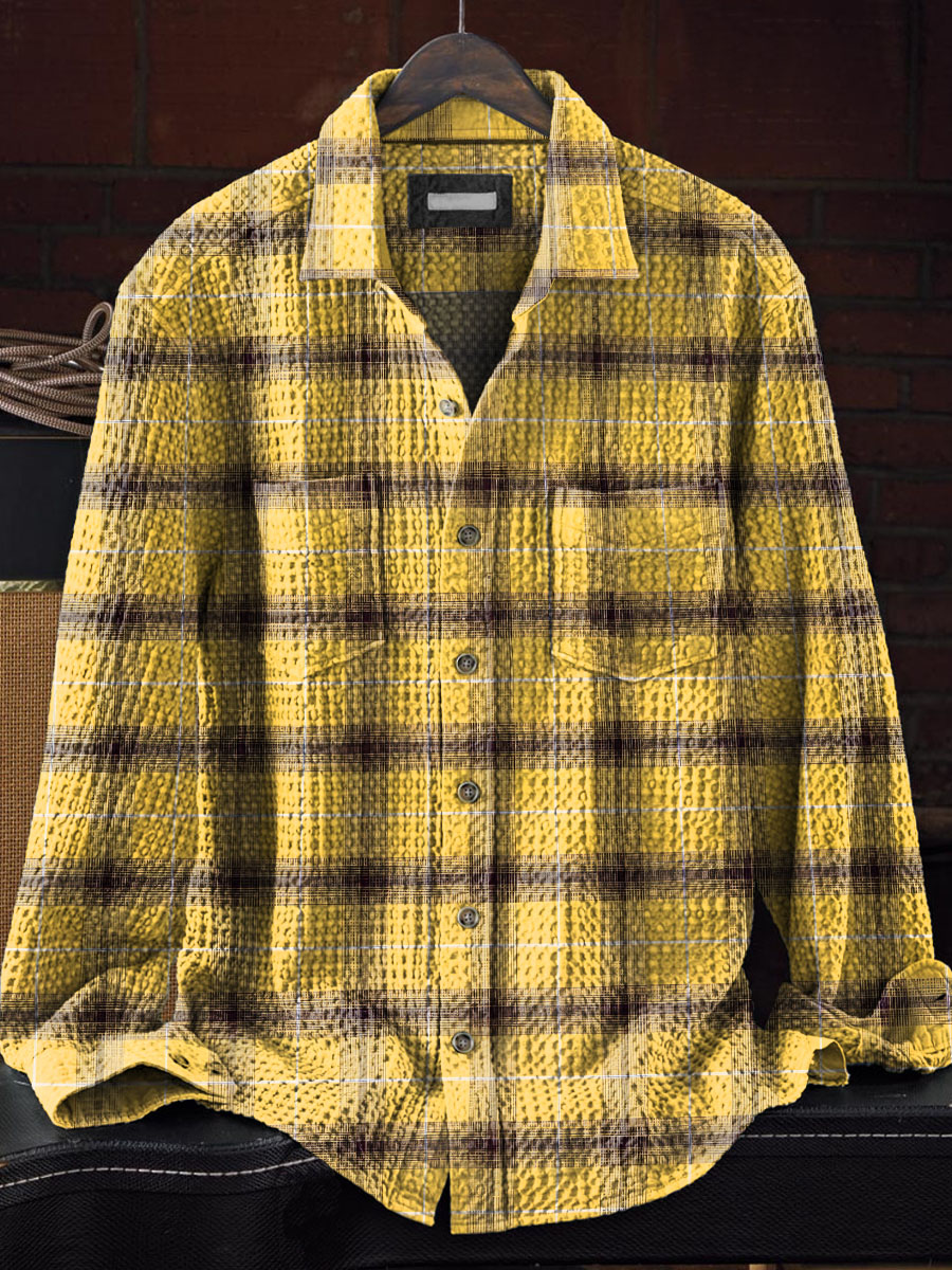 Vintage Plaid Print Casual Cotton And Linen Short Sleeved Lapel Shirt