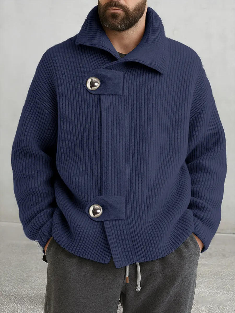 Men's Casual Print Knit Collared Cardigan Sweater